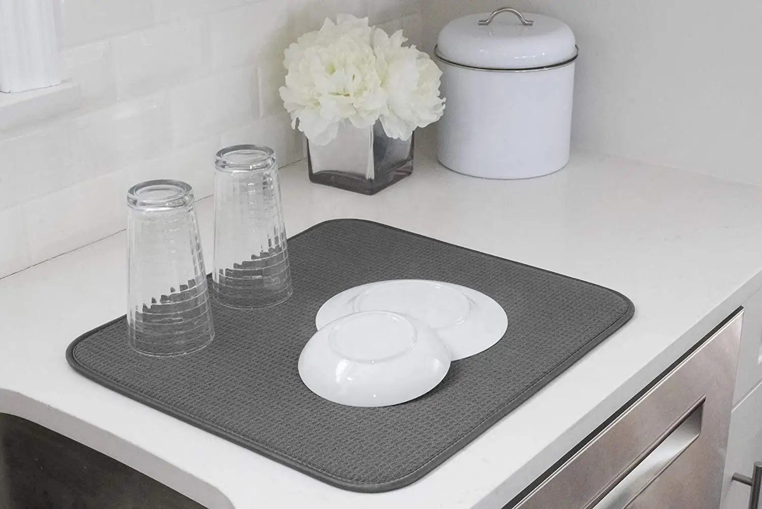 Absorbent Dish Drying Mat Reversible Microfiber Dish Mat Kitchen Cushion Pad Tableware for Kitchen