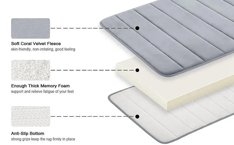 You are here: Home » Products » Bath Mat » Coral Velvet Fleece Memory Foam Anti-Slip Bottom Super Absorbent Non-slip Bathroom Shower Floor Bath Mat