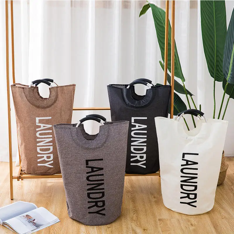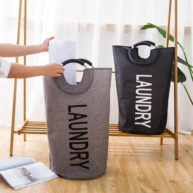 Custom Logo Collapsible Oxford Fabric Laundry Hamper Foldable Canvas Bathroom Cloth Basket Handles Storage Washing Box Home