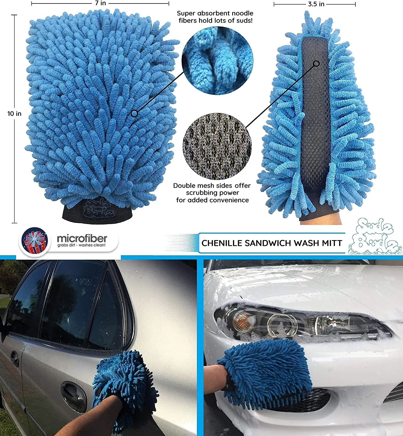 1PC Chenille mitt, 1PC colar fleece mitt, 2PC waffle towels, 1PC Wheel Brush, 1 PC Detailing brush