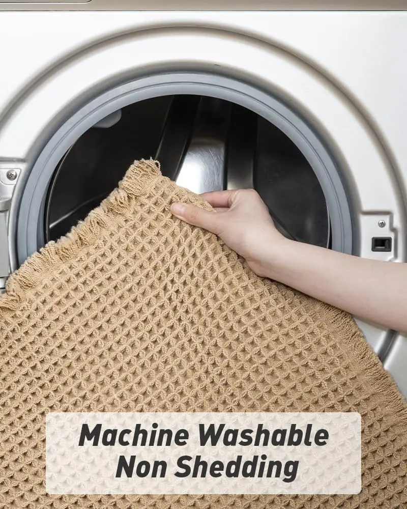 Waffle Bath Mats Super Absorbent Non Slip Bath Mats for Bathroom Floor Machine Washable Bathroom Rugs with Tassels